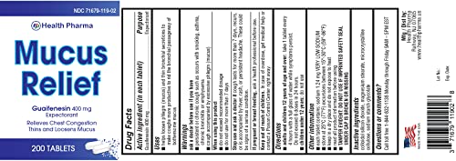 - ✅ FAST ACTING: Health Pharma Guaifenesin is a fast-acting expectorant helps loosen and thin mucus. Take 1 tablet every 4 hours with water.