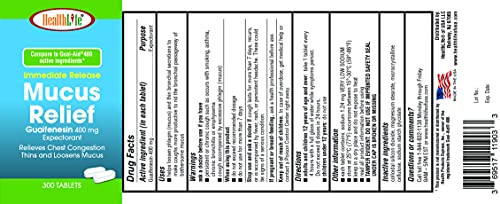 - ✅ FAST ACTING: HealthLife Guaifenesin is a fast-acting expectorant helps loosen and thin mucus. Take 1 tablet every 4 hours with water.